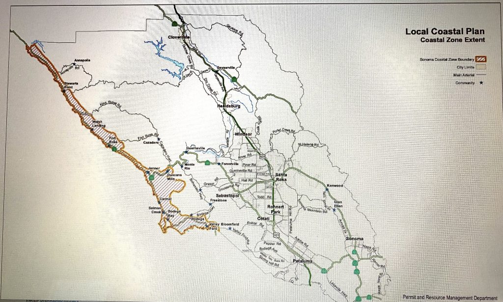 The “Coastal Zone” is the strip on the Sonoma coast from Mendocino County at the north to Marin Co. at the south end.